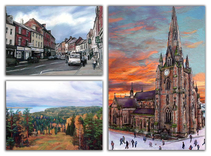 Our contemporary, mixed-media landscape paintings can bring a city to life, or bring the beauty and tranquility of nature into your home. Home is where the heart is - capture the beauty of the places special to you with a unique hand crafted landscape.